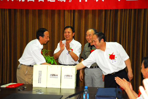 仪式最后,曹伯植先生向我校图书馆赠送了此次出版的两套书籍,胡俊生副校长代表我校向曹伯植先生颁发了特聘研究员的聘书。