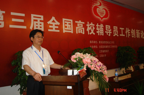 本次论坛的主题是进一步提高高校辅导员工作的科学化水平。教育部部长助理、党组成员林蕙青,全国高校辅导员工作研究会会长、山东大学党委书记朱正昌,江苏省教育厅厅长沈健,教育部思政司副司长刘贵芹,全国高校辅导员工作研究会顾问、辽宁省委高校工委副书记曲建武,山东省委高校工委副书记齐秀生,江苏省教育厅副厅长朱卫国,无锡市委常委、组织部部长陈振一,江南大学校长陈坚,全国高校辅导员工作研究会秘书长、山东大学党委副书记方宏建等出席了论坛。