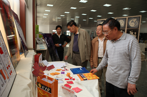 刘建德书记等观看毕业设计作品展