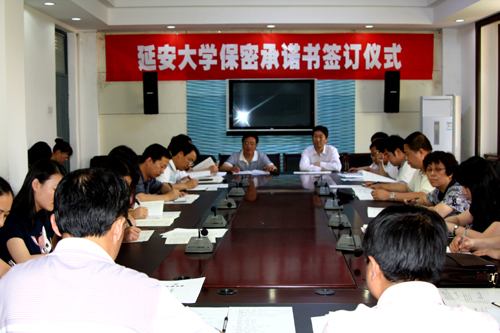 仪式上,党办副主任、信息中心副主任佘占宏宣布了延安大学首批签订保密承诺书人员名单。随后,参加仪式的同志当场签订了保密承诺书,刘建德书记和刘庆利副书记也在保密承诺书上签了字。仪式上,还向大家现场发放了《全国保密承诺书签订人员知识竞赛试卷》,与会同志进行了现场作答。