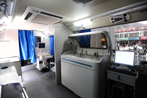 本网讯 日前,附属医院为方便周边乡镇单位组织集体体检,引进了中通高档全功能、一体化流动体检车。该体检车功能齐全,配有全自动生化分析仪、超高档彩色B超、车载DR、XS系列血液分析仪、洗扳机、离心机、显微镜、十二道心电图机等高档体检设备。心电图机可回放HORTER记录器上的心电信息,快速进行动力二阶梯负荷试验,具有强大的分析功能和波形冻结功能;全自动数字探测器具有更快的诊断时间,更大的患者流通量,在相同曝光剂量下,更好的发挥软组织和骨骼可视性,具有广阔的动态范围,最短预览时间不到4秒钟;优化影像处理软件具备自动优化功能,可根据不同患者、不同部位影像特性,自动运用最优化的特异性图像处理软件,让影像质感更完美;XS系列血液分析仪,具有出众的软件分析功能,在流动的体检车内同样享有独特的在线网络通信系统,为广大体检用户提供高质量的服务。