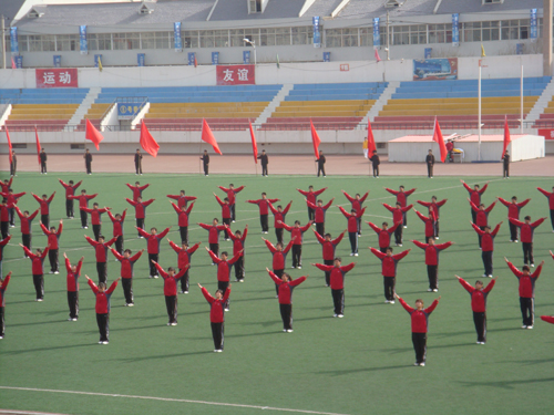 开幕式上,体育学院院长魏锦龙致了开幕词。薛宇和刘洋分别代表裁判员宣了誓。2007级的150名学生表演了新编第二套中学生广播体操《时代在召唤》,2008和2009级的120名学生表演了大型团体操《藏龙卧虎》。胡俊生副校长宣布本次运动会比赛正式开始。