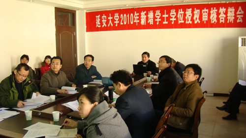 本网讯 3月9日下午,学校在逸夫楼第二会议室组织召开了2010年新增学士学位授予权预审答辩会。由教务处副处长和部分学院主管教学的副院长组成的专家组及各相关专业负责人等参加了会议。会议由教务处处长齐广才主持,
