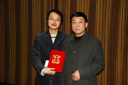 廉振民校长向获得一等奖的学生陈刚军颁发荣誉证书