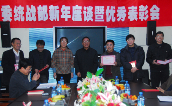 本网讯 12月18日下午,我校在逸夫楼第三会议室举行了统一战线新年座谈会暨优秀表彰会。校党委书记刘建德,市政协副主席、我校科技处处长郭必选,组织部部长薛美玲以及民进、民盟、农工、民建和民革等各民主党派代表,留学归国人员代表,政协委员,人大代表,少数民族学生代表和相关部门负责人40余人参加了座谈。座谈会由党办主任、统战部长田伏虎主持。
