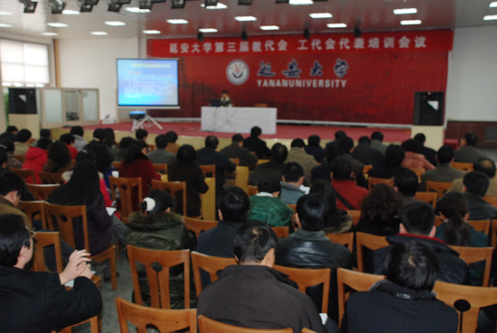 本网讯 为了开好我校第三届教代会和工代会代表会议,全面提高代表自身素质,努力履行代表的权利与义务,切实为“双代会”的圆满举行打下坚实基础,经学校第三届教代会、工代会筹备领导小组研究,我校于12月9日下午,在学校活动中心举行了第三届教代会、工代会代表培训会议,校工会邀请长安大学工会副主席雷占荣同志为全校164名“双代会”代表开办了“高校教代会相关知识讲座”。