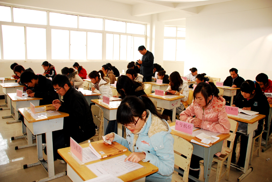 11月22日、26日和29日,我校在新建成的机房内首次进行了国家普通话水平计算机辅助测试,2006级、2007级本科生和部分研究生、青年教师约2000余人参加了测试。本次测试采用计算机辅助测试系统,将一些人工操作的工作环节由计算机代替,测试界面清晰,操作简便,同时采用数字化技术录音,体现了普通话水平测试手段的现代化。