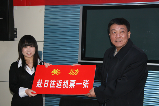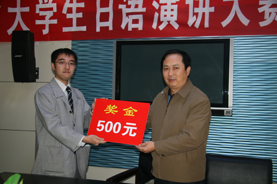 表彰会上,廉振民校长和胡俊生副校长分别为获得十六届陕西省大学生日语演讲大赛特别奖的卢妞妞和优秀指导教师多田州一、吕娜颁发了奖金和荣誉证书。外籍教师多田州一和卢妞妞先后发了言,卢妞妞还向在座师生进行了汇报表演。