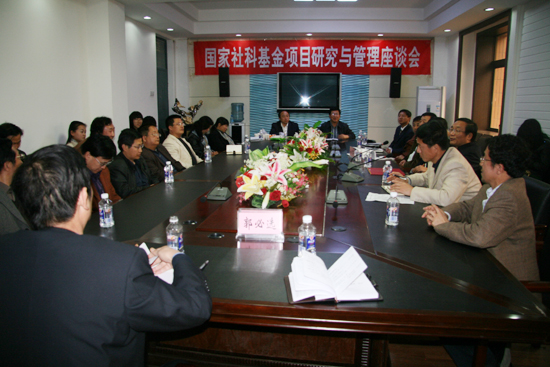 本网讯 10月26日下午,我校在逸夫楼第一会议室召开了国家社科基金项目研究与管理座谈会,全国哲学社会科学规划办主任佘志远、陕西省哲学社会科学规划办主任白宽犁,我校副校长马海平,党办主任田伏虎、科技处处长郭必选及各学院主管科研工作的副院长,承担国家级、省级哲学社会科学规划项目的负责人等参加了座谈。