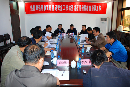 在逸夫楼第二会议室,检查组与我校副校长许静洪及教务处、学生处、保卫处、后勤处、资产处、基建处、房产处和综治办等相关部门的负责人进行了座谈。许静洪副校长就我校建立稳定风险评估机制、在大学生中开展安全教育的情况、重点要害部门的防控值班备勤情况、安全“三项行动”开展情况及矛盾纠纷排查调处和安全隐患排查整改的情况等向检查组作了汇报。