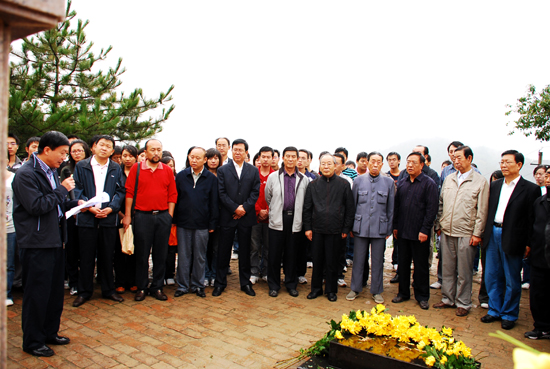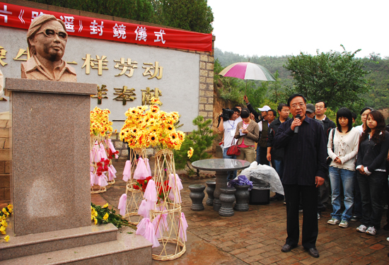 本网讯 9月7日上午,细雨蒙蒙,远山薄雾笼罩,经过三年多的精心筹备,历时八个月的艰辛拍摄,八集大型电视记录片《路遥》在他的母校——延安大学路遥墓前拍完了最后一组镜头后正式杀青。我校党委书记刘建德、校长廉振民,延安市人大常委会原副主任白崇贵,路遥研究会会长、我校原党委书记、校长申沛昌,我校副校级调研员、路遥研究会副会长宋学成,我校党委委员、党办主任田伏虎,原延安地区纪检委书记、延川县原县委书记申昜,延安市政协经济委员会主任曹毅、延安电视台台长刘春景,纪录片《路遥》总监制、榆林路遥文学联谊会会长、路遥胞弟王天笑,纪录片《路遥》总导演田波等及纪录片《路遥》摄制组全体工作人员、路遥的生前友好和我校部分师生参加了封镜仪式。封镜仪式由廉振民校长主持。