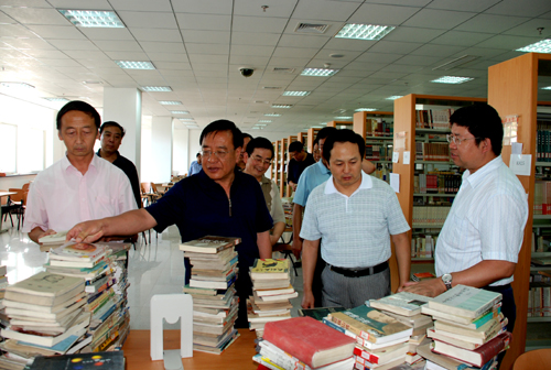 下午,检查组来到新图书馆,听取了图书馆馆长赵振峰的情况介绍,并在图书馆几位负责人的陪同下,实地察看了新图书馆各项工作的进展情况。校领导希望图书馆的工作人员能克服困难,为新图书馆尽早投入使用而继续努力。检查组在检查了旧图书馆的维修改造情况后,来到附属中学、附属小学和幼儿园,听取了中小幼负责人的情况汇报,对存在的一些问题进行了了解和协调。最后,检查组驱车来到萃园校区工程现场,对河堤工程进行了检查。