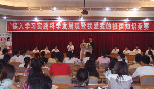 比赛内容包括“学习实践科学发展观”和“爱国主义”两个方面,题型分为必答、互问互答、抢答和风险题4类。互问互答环节中,两队选手还进行了精彩的才艺表演。比赛结束后,拓宏伟副部长对比赛进行了点评,指出学习实践科学发展观,必须要深刻理解、联系实际,用学习的成果来指导自己的学习生活。