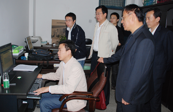 本网讯 5月15日上午,党委书记刘建德同志在校党委委员、党办主任田伏虎,校办主任姚正宽的陪同下,来到信息中心视察学校OA办公自动化系统工程建设工作。
