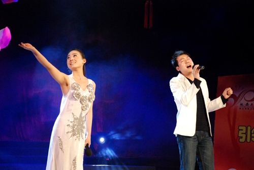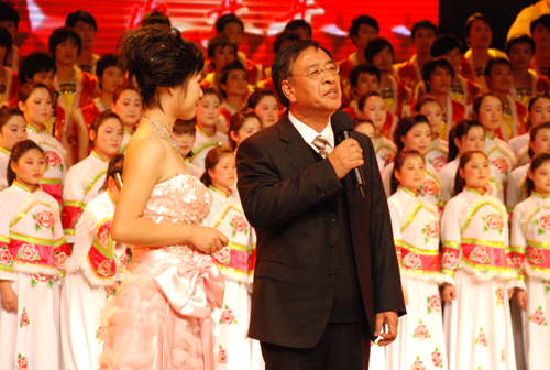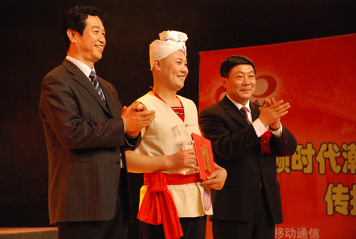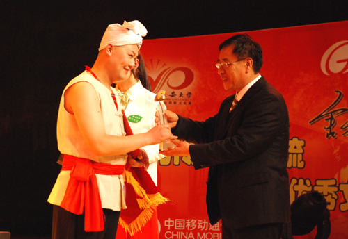 廉振民校长和师合林副市长为获得“观众最喜爱歌手奖”的选手颁奖