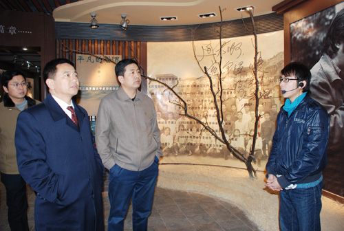 在陪同杨金廷院长参观完我校校园、校史陈列馆、陕北历史民俗馆和路遥文学馆之后,许静洪副校长和校办、人事处、财务处、教务处等部门的主要负责同志与考察组成员在逸夫楼第三会议室进行了座谈。许静洪副校长就我校的基本情况,办学定位和办学指导思想,如何建设多科性大学,更好地服务地方经济社会发展等内容进行了介绍和说明。