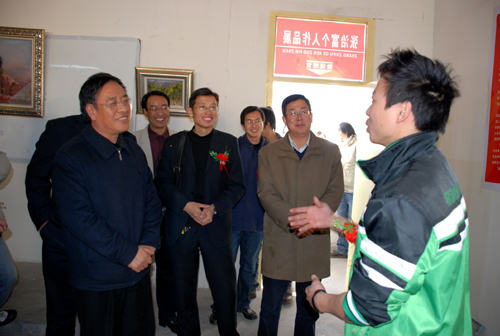 本网讯11月18日上午,“情系黄土地——延安大学鲁迅艺术学院美术系2005级学生张治富美术作品展览”在怡园小区教学楼三楼展室举行。延安美术家协会名誉主席赵明生、副主席马建飞,我校学生处处长韩卿元、鲁迅艺术学院党总支副书记周庆丰、美术系副主任王文权、专业教师郭峰参加剪彩仪式并观看了画展。剪彩仪式由鲁迅艺术学院副院长冯颜明主持。