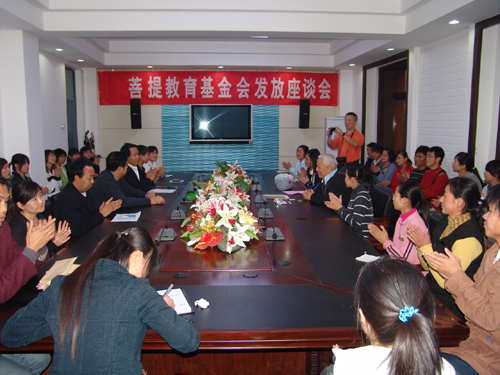 菩提教育基金会是由美籍华人成立的一所非盈利基金组织,通过多方筹集善款,帮助经济困难的学生完成更高的学业,回馈家庭与社会。该基金会去年共资助我校32名贫困生,今年受助人数已增加到75人。本年度助学金共分两次发放,在本次贫困生助学金发放仪式上,白万乔等46名品学兼优的贫困学生得到了资助,对其他29名同学的资助将于11月举行。