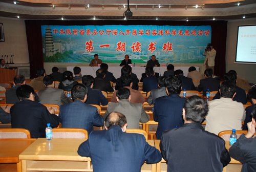 本网讯 10月10日,中共陕西省委办公厅第一期学习实践科学发展观读书班80余名学员来我校考察学习。