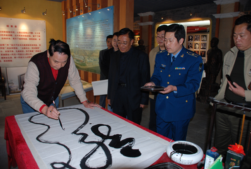 座谈结束后,刘书记等陪同刘玉堤中将一行参观了我校校园、校史陈列馆、陕北民俗馆和路遥文学馆,并与刘玉堤中将等在窑洞广场、吴玉章塑像前合影留念。在参观完校史陈列馆和路遥文学馆后,刘玉堤中将还欣然为两馆题了词。