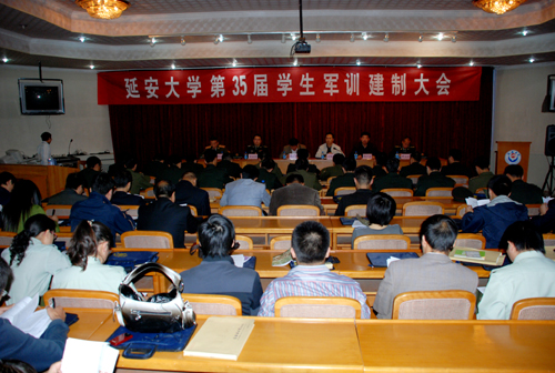 会上,齐广才处长宣读了第35届军训团建制及任职名单,军训团政委、王延海部长就军训工作作了安排。本届军训团团长、王启田大校和军训工作领导小组组长、高延龙副书记先后讲了话。高延龙副书记在讲话中指出,自西安陆军学院和我校结成双拥共建院校以来,两校共呼吸、同发展,特别是在学生军训工作方面进行了良好的合作,取得了优异的成绩,在2000年获得了全国高校军训工作先进单位,2007年我校用延安精神军训育人模式获陕西省政府优秀教学成果特等奖。高副书记希望大家能发扬成绩,再接再厉,为军训工作再上新台阶而努力。