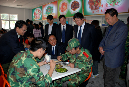 刘书记等首先察看了餐厅各项基础设施及物资的配备和准备情况。随后,刘书记、张副校长等来到餐厅,与正在进餐的学生进行了交谈,询问和了解他们对餐厅设施、饭菜质量、服务态度和饭菜价格等方面的看法、意见和建议。检查结束后,刘书记、张副校长等在餐厅与学生们一同就餐。