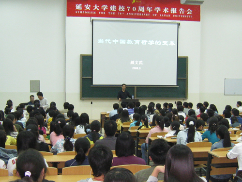 本网讯 在9月18日至24日校庆期间,我校先后邀请了新华社新闻信息中心常务副主任梁相斌的《中西新闻之战》、旅德歌唱家龚琳娜的《歌者为谁而歌》、中国艺术研究院向延生教授的《聂耳与义勇军进行曲冼星海与黄河大合唱》、武警医学院李浴峰教授的《中国健康教育与健康促进的现状与展望》、西北大学张志勇教授的《微电子及宽禁带半导体研究》、陕西师范大学郝文武教授的《教育实践的发展与教育理论的变革》、中国电力研究院何大愚教授的《对三次工业革命新认识》、中科院上海光学精密机械研究所李建郎教授的《新型光纤和固体激光器技术》、北京体育大学黄竹杭的《体育科研与学校体育专业的发展》等专家学者,为我校师生作了报告。在报告中,专家以通俗风趣的语言,引人入胜演讲风格,极大调动广大师生的科研兴趣,开阔了视野,受到师生们的广泛好评。