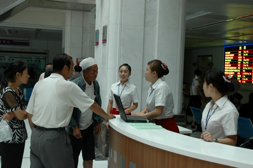 衣着整齐的导诊小姐,温馨礼貌的指引,这批专职导诊人员为就诊的病人提供全程咨询和引导。特殊急诊的病人则可免去门诊检查,直接送入病房救治,消除了繁琐的入院手续,为患者及时就诊争取了时间。