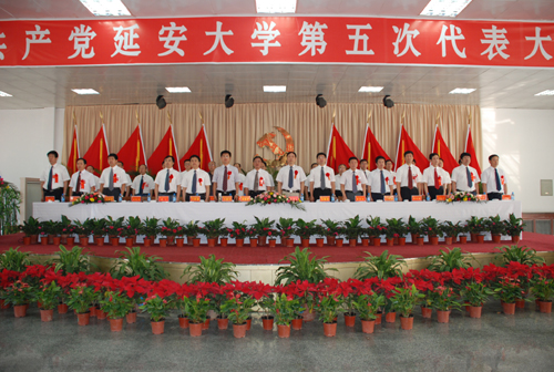 本网讯 7月10日上午,我校第五次党代会开幕式在学生活动中心隆重召开,陕西省委教育工委副书记郝利生、中共延安市委副书记王建军、省委组织部宣教干部处处长朱晓渭、省委教育工委纪工委副书记王世森、省委教育工委组织群工处处长王军周,省委教育工委、省教育厅干部人事处副处长袁宁及列席会议的原我校党委书记、校长申沛昌,原延安医学院党委书记李正祖,中国民主同盟延安市委主委、延安市政协副主席、延安大学人文学院教授高长天,中国民主促进会延安市委主委、延安市政协副主席、延安大学政法学院教授郭必选,中国农工民主党延安市委主委、延安市政协副主席、延安大学医学院教授霍满鹏和全体校领导、主席团成员在主席台就座。开幕式由校党委副书记高延龙同志主持。