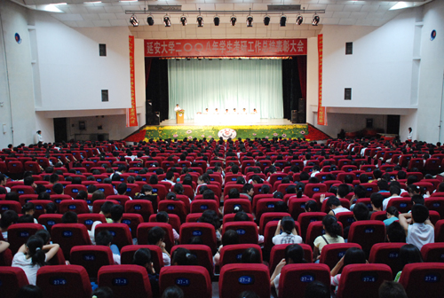 本网讯 为激励广大在校学生刻苦学习,立志成才,鼓励各教学单位加强管理,大胆创新,促进我校良好学风的进一步形成,6月19日晚,我校2008年学生考研工作总结表彰大会在学生大礼堂举行。校领导刘建德、廉振民、高延龙、胡俊生及学生处处长韩卿元,教务处处长齐广才、副处长武忠远在主席台就座,各学院、各部门主要负责同志,学生代表及2008年考取研究生的257名学生参加了表彰会。表彰会由党委副书记高延龙同志主持。
