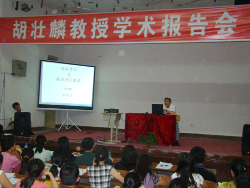 胡教授结合自己科研成果及教学实践,从采用隐喻方法进行词汇教学、为什么在教学中需要隐喻意识、在词汇教学中如何培养隐喻意识几个方面生动、详细地阐述了外语教学中的隐喻意识和词汇教学关系。