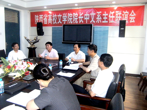 本网讯 6月13日,陕西省高校文学院院长中文系主任联谊会在我校逸夫楼第三会议室举行。校长廉振民、副校长胡俊生及教务处、科技处的负责同志出席了会议。