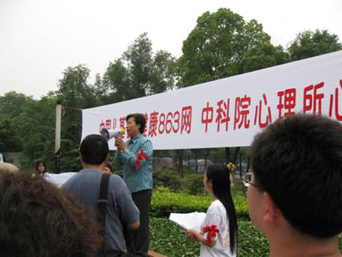 中国科学院心理研究所所长、5.12汶川地震心理救灾专家组组长张侃教授在誓师仪式上讲话 |