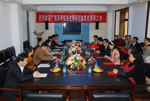 本网讯 4月17日上午,广东药学院学习考察团一行20人,在院长朱家勇、副院长郭娇的带领下,来我校进行学习考察。我校副校长胡俊生及医学院、附属医院、校办、教务处、人事处、学生处、科技处的主要负责同志接待了朱家勇院长一行,并在逸夫楼第三会议室与考察团同志进行了座谈。