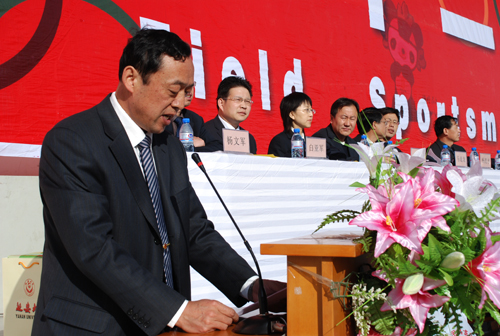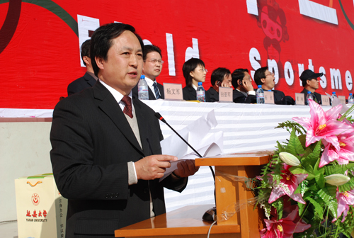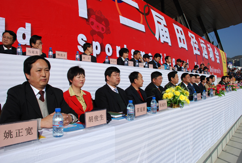 在隆重的运动员、裁判员入场仪式结束后,副校长、校体委主任胡俊生致了开幕词。胡副校长在开幕词中说,要以第32届田径运动会为契机,在全校范围内掀起群体性健身活动的高潮,营造良好的阳光体育运动氛围。信息学院学生任蒙和体育学院刘文超分别代表运动员和裁判员宣了誓。