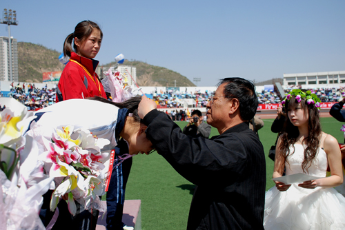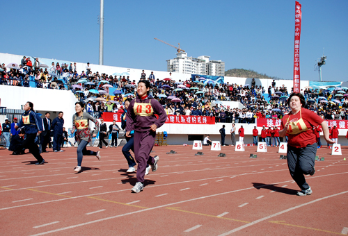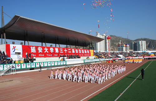 本网讯 4月24日上午,我校第32届田径运动会开幕式在体育场举行,校领导刘建德、廉振民、高延龙、马海平、许静洪、张威虎、胡俊生、王延奇,延安职业技术学院党委副书记高思龙、延安市体育局副局长卫彦武、宝塔区体育中心副主任杨勇,宝塔区宝塔山街道党工委书记周培义、副书记常延丽及校体委委员、各学院、各部门的负责同志等应邀出席了开幕仪式。开幕式由校工会副主席李西安主持。