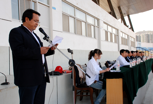 本网讯 为了表达全校师生对北京2008年奥运会的热切企盼和美好祝愿,营造喜迎奥运,心系祖国,刻苦学习,立志成才的良好校园氛围,同时,以奥运为契机,全面推动我校阳光体育健身活动的开展,4月9日下午,学校在体育场举行迎奥运万名学子长跑活动启动仪式,党委副书记高延龙、副校长胡俊生及教务处、学生处、团委,各学院主管学生工作的负责人、辅导员和13个学院的1300余名学生参加了仪式。仪式由学生处处长韩卿元主持。