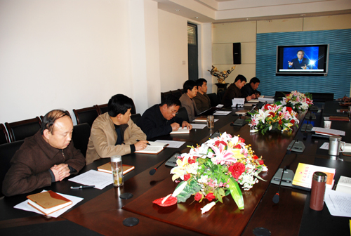 随后,中心学校小组成员们观看了清华大学国际问题研究所所长闫学通教授所作的题为《党的十七大后的中国外交及对台政策》的录像报告。报告的主要内容包括国际格局的变化速度、2008年中国面临的国际环境、中国的对外政策与对台政策等。
