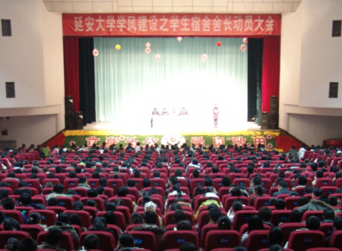 本网讯 12月27日晚7时,我校在大礼堂召开延安大学学风建设之宿舍舍长动员大会,校党委副书记高延龙出席大会,学生处处长韩卿元、副处长高峰,教务处副处长武忠远及各学院主管学生工作的领导、辅导员和1100多名宿舍舍长参加了会议。会议由高峰副处长主持。