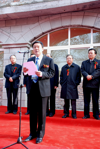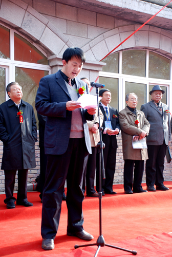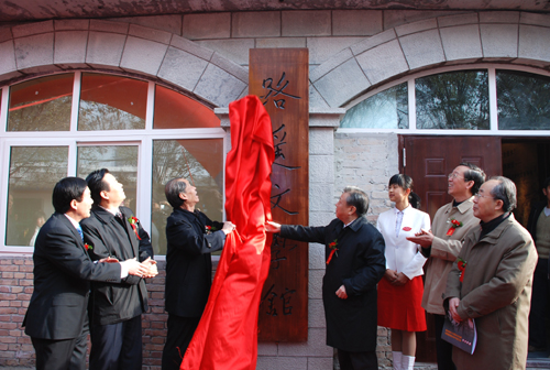 随后,全体与会代表来到路遥文学馆前,举行了揭牌仪式。揭牌仪式由我校党委副书记刘庆利主持,廉校长和路遥文学馆筹建小组组长梁向阳介绍了路遥文学馆的筹建和基本情况。路遥研究会会长申沛昌、全国政协科教文卫委员会副主任王巨才、中国作协副主席陈忠实、陕西作协党组书记雷涛、延安市委常委郝飚和我校校长廉振民共同为路遥文学馆揭了牌。