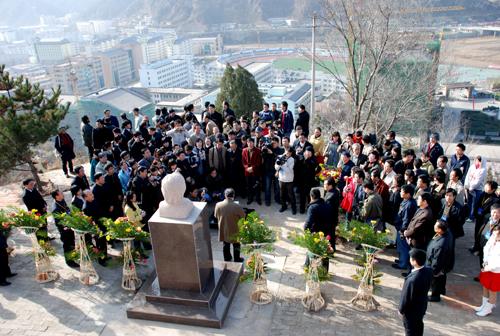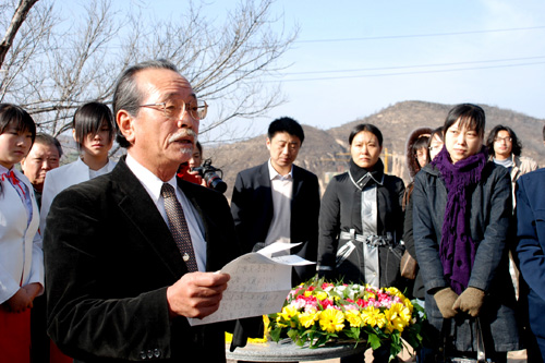揭牌仪式结束后,全体与会代表缓步登上文汇山,祭扫了路遥墓。祭扫仪式由省作协党组书记雷涛主持,申沛昌、刘庆利及延川县领导、清涧县领导、日本姬路独协大学教授安本实、路遥生前好友代表曹谷溪和路遥亲属代表王天笑先后讲了话,我校学生代表发了言。