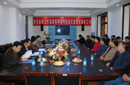 本网讯 10月29日上午,山东省高校考察团一行20余人在山东省委高校工委副书记邢善萍的带领下来我校考察学习,我校副校长许静洪、党办主任田伏虎、学生处处长韩卿元、后勤处处长台世强、保卫处处长赵贞接待了邢副书记一行。