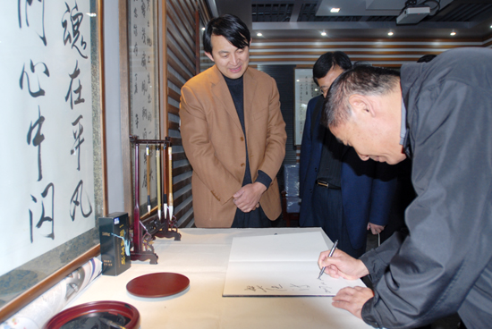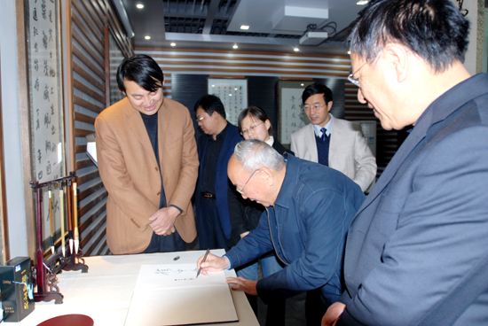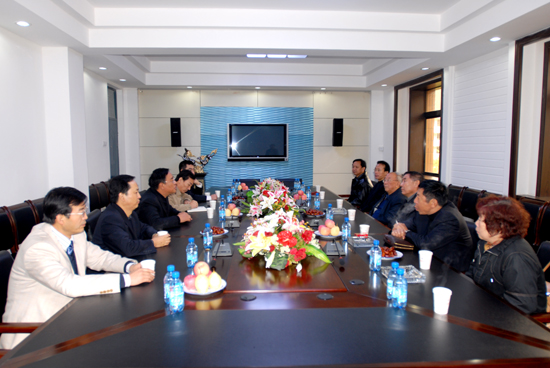 本网讯 10月14日,上海宝山钢铁集团有限公司教育基金会秘书长樊纯诗一行,由陕西省人大常委会副主任桂中岳陪同,来我校考察工作。我校党委书记刘建德和副校长胡俊生接待了宝钢基金会客人,并陪同客人们参观了我校校园、校史陈列馆、陕北历史民俗馆和路遥文学馆。参观结束后,双方在逸夫楼第二会议室进行了座谈。