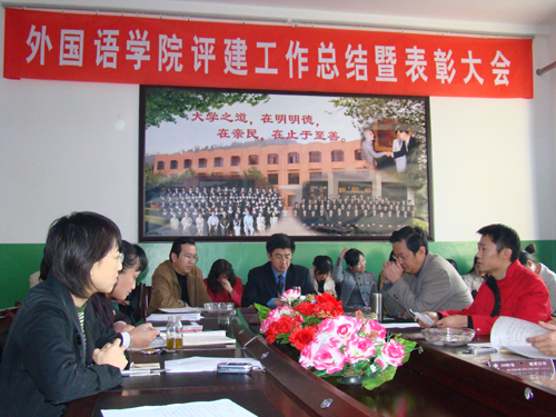 本网讯 10月17日,外语学院在克阿楼学院会议室举行了本科教学工作水平评估总结暨表彰大会。会议由外国语学院党委书记吴卫东主持。