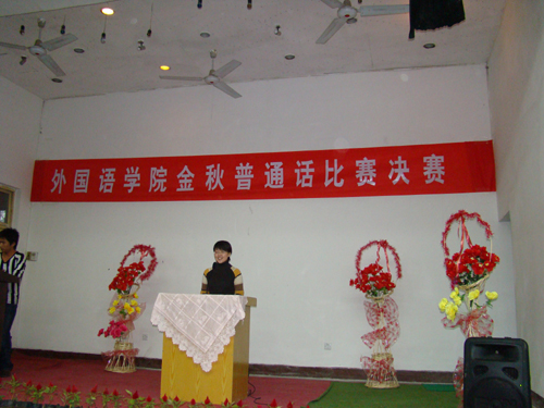 本网讯 为了进一步做好普通话推广工作,提高学生普通话水平,丰富学生课外生活,9月27日下午,外国语学院在学院小礼堂举行了金秋普通话比赛,共有从各个班级举行的普通话预赛中选拔出来的12名选手参加了最终的决赛。经过一个半小时的角逐,2005级商务英语专业一班的陈月同学获得了比赛一等奖,韩旭和任婷获得二等奖,李敏、郭改莉和韩欢同学获得三等奖。外国语学院学院领导梁润生、吴卫东、张志敏、拓欣以及部分教师代表观看了比赛。