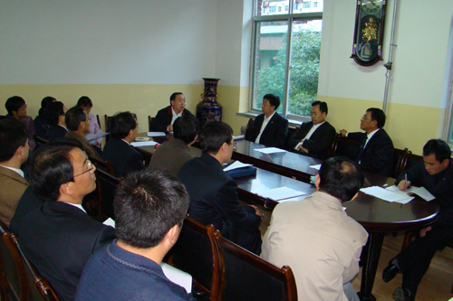 本网讯 9月28日下午,政法学院在学院会议室召开本科教学评估总结会,学院领导、学科带头人、研究基地负责人、精品课程建设负责人、教研室主任以及其他工作人员参加了会议。校党委书记刘建德同志参加了会议。