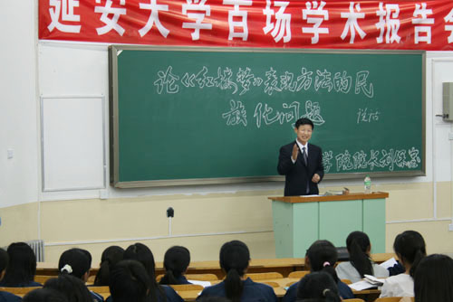 9月25日晚7:30,文学院院长刘保忠教授在第三阶梯教室为我校师生作了题为《论〈红楼梦〉表现手法的民族化问题》的学术报告,报告会由科技处副处长樊延虎教授主持。