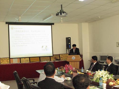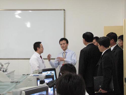 下午2:30,倪教授在学院三楼学术厅听取了苗乃周院长所作的评估汇报,并就对评估工作的认识等问题与在座的各教研室、实验室负责同志、中青年教师代表进行了亲切的会谈。随后倪超教授在院领导的陪同下参观考察了形态学、护理学、解剖学等实验室及尸体库和医学模拟中心。