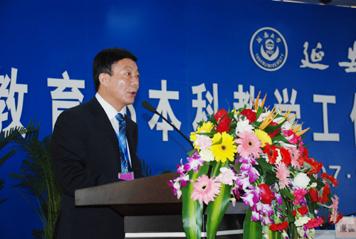 陕西省教育厅副厅长郝瑜同志代表中共陕西省委教育工委、教育厅在讲话中指出,延安大学有着悠久的办学历史和办学传统。在长期的办学过程中,积累了丰富的办学经验,形成了鲜明的办学特色。2005年以来,延安大学抓住省部共建的大好机遇,外拓视野,内抓管理,在人才培育模式、学科建设、实践教学、教学管理的改革与探索取得了明显的成效。目前,学校的教学规模不断扩大,办学层次不断提升,师资队伍学历层次显著提高,科研项目大幅增长,教育教学改革收效明显,校园面貌也发生了很大改观,办学水平不断提升,综合实力显著增强,已成为陕西区域人才培养的重要基地,为陕北老区的建设和发展发挥着不可替代的作用。希望延安大学紧紧抓住这次评估的良好机遇,虚心向各位专家学习,认真听取专家的意见和建议,正确对待评估中出现的问题,力争在本次评估中获得更多的收益,推动学校的各项工作再上一个新的台阶。作为延安大学的上级主管部门,省教育厅按照教育部的要求,将和延安大学一道紧密配合评估专家组做好考察评估工作,根据评估专家组的意见和建议,认真组织实施评改,不断改进相关工作,争取为我国的高等教育事业做出新的贡献。