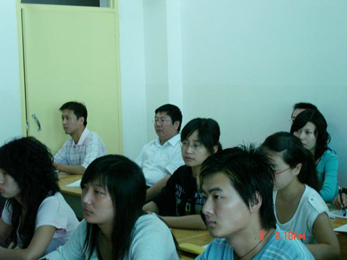 本网讯 9月3日上午,党委副书记高延龙由文学院副院长惠雁冰陪同检查了文学院的开学上课情况,并听了孔岩老师为新闻学专业2005级学生讲授的《社会心理学》。孔岩老师熟练地运用多媒体,以生动的语言和饱满的精神,通过典型案例分析,充分调动了学生的积极性,达到了师生互动。